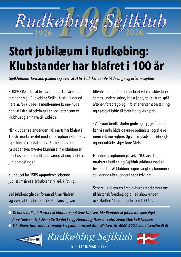 Rudkøbing Sejlklub 100 år